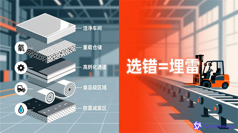 市面上常见的厂房地坪类型多达5种以上,每种都有其“专属战场”: